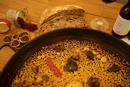 El arroz con conejo y caracoles, hecho con la receta familiar, es el plato estrella de este restaurante de carretera. Y es que esta zona de pequeños pueblos es conocida por estas paellas, donde la gastronomía tradicional se combina con las nuevas tecnologías en cocina.